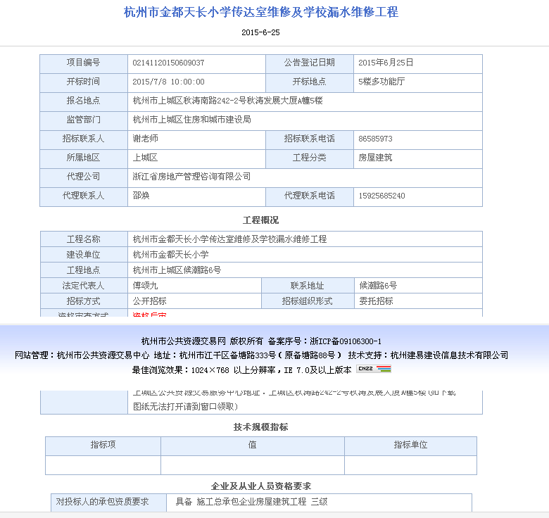 杭州市金都天長(cháng)小學(xué)傳達室維修及學(xué)校漏水維修工程